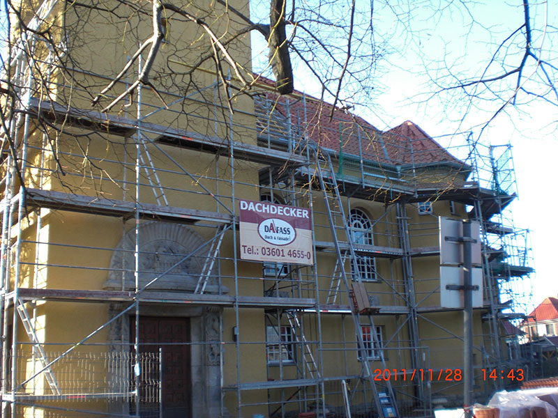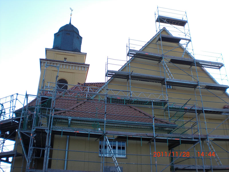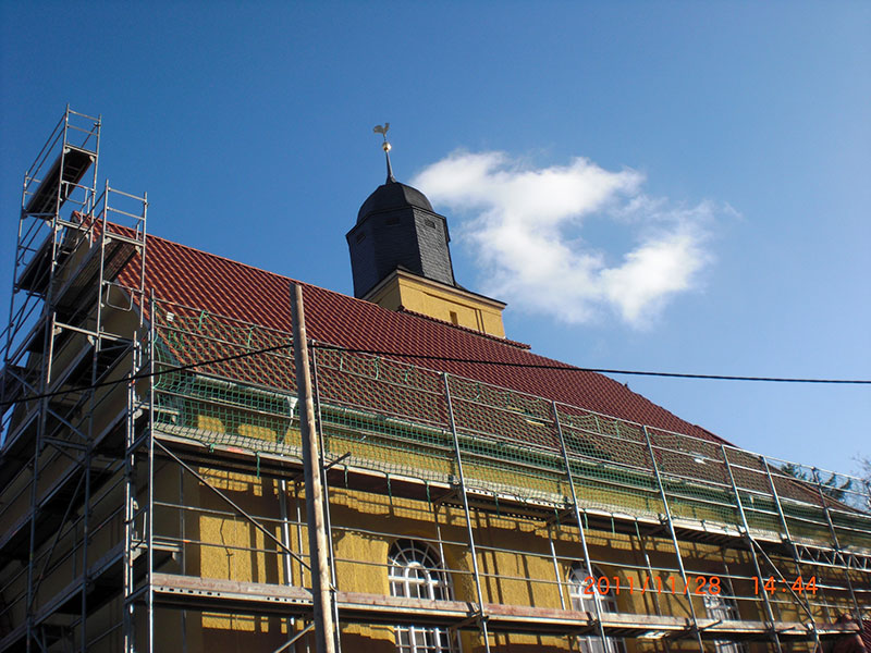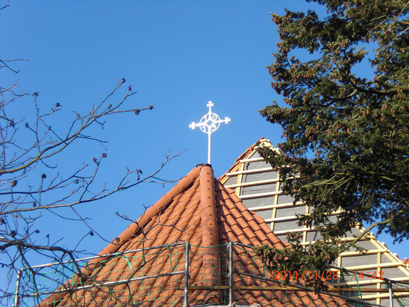 Unsere Leistungen: komplette Erneuerung der Dachdeckung mit historischen Bleiverwahrungen, Vergoldung Kreuz