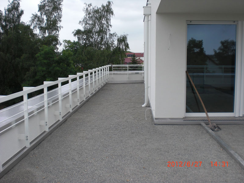 Unsere Leistungen: 800 m² Dachabdichtung mit Bitumendampfsperre, Dämmung und Bitumenabdichtung und Kiesschüttung