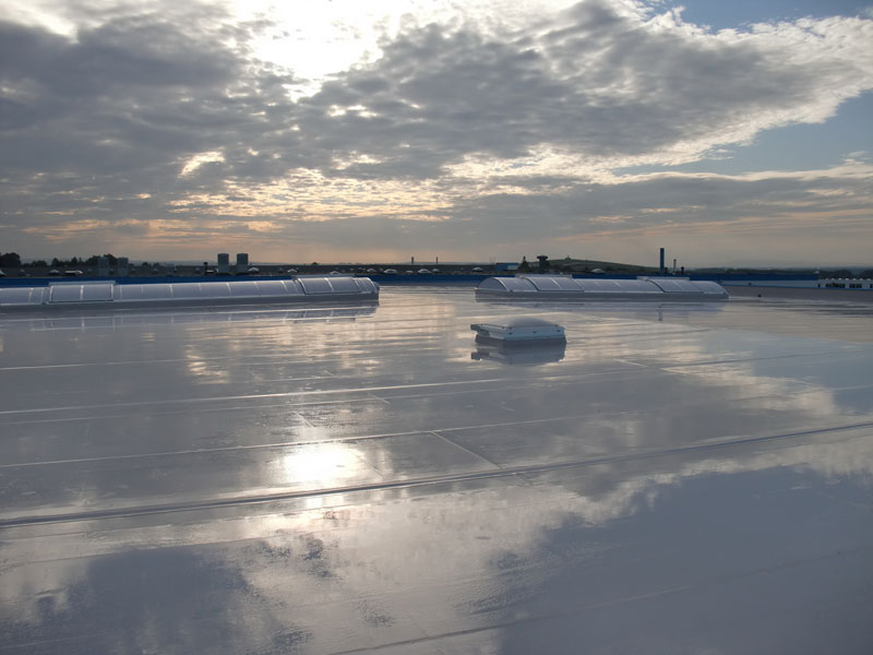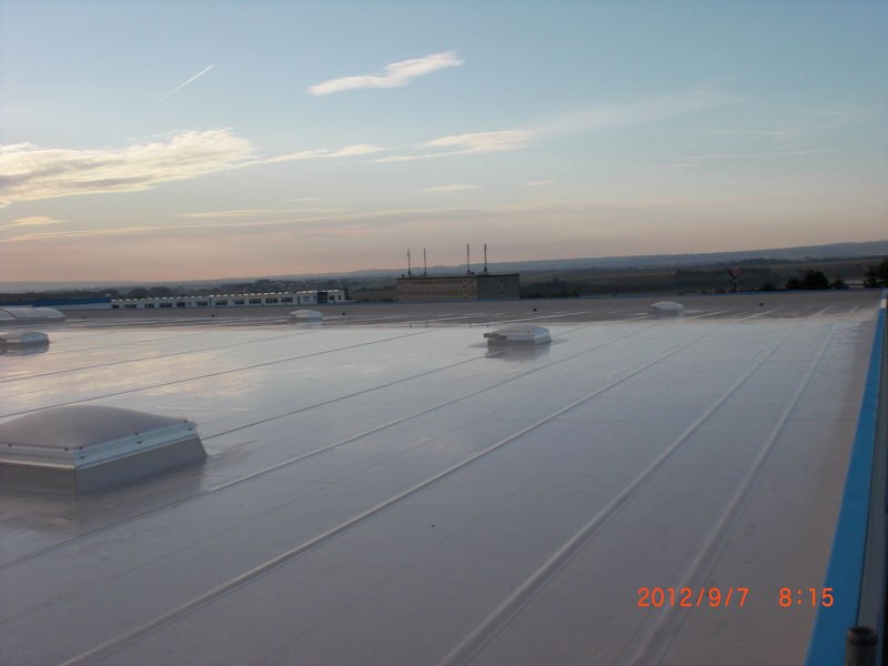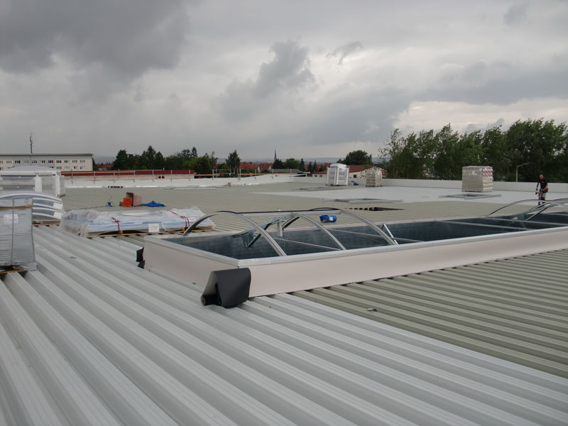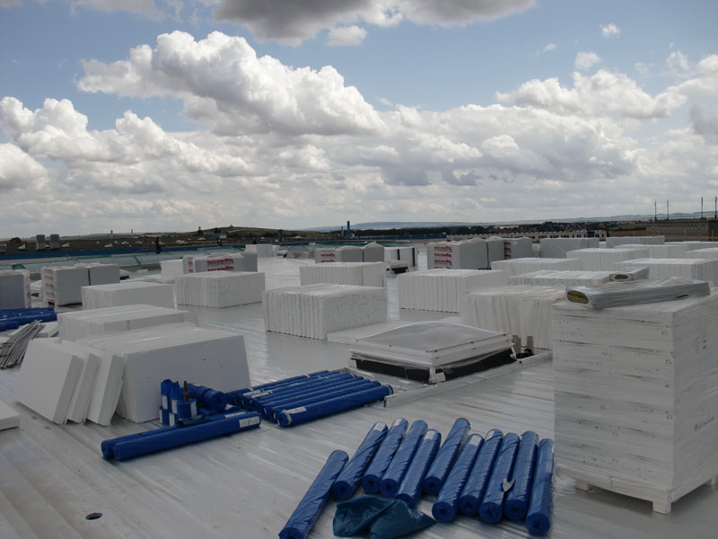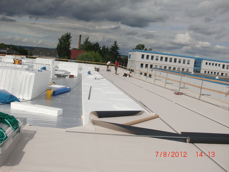 Unsere Leistungen: 3500 m² Dachabdichtung , Dampfsperre, Trapezbleche, Dämmung und Folienabdichtung