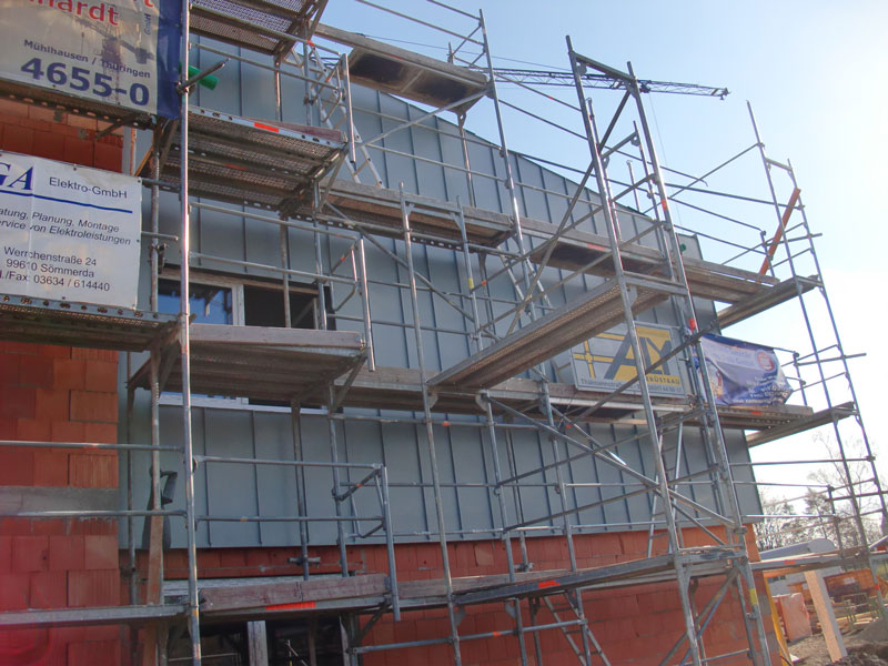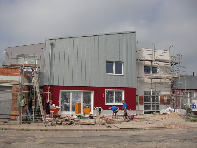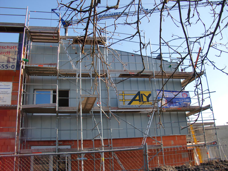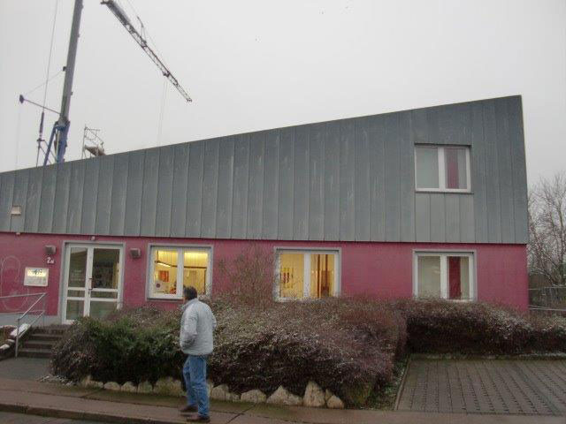 Unsere Leistungen: ca. 210 m² Dachdeckerarbeiten eines vorhandenen Flachdaches, einer Dachterrasse und eines Pultdaches incl. neuen Regenfallrohen, Fassadenverkleidung mit Zink