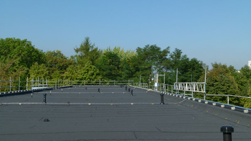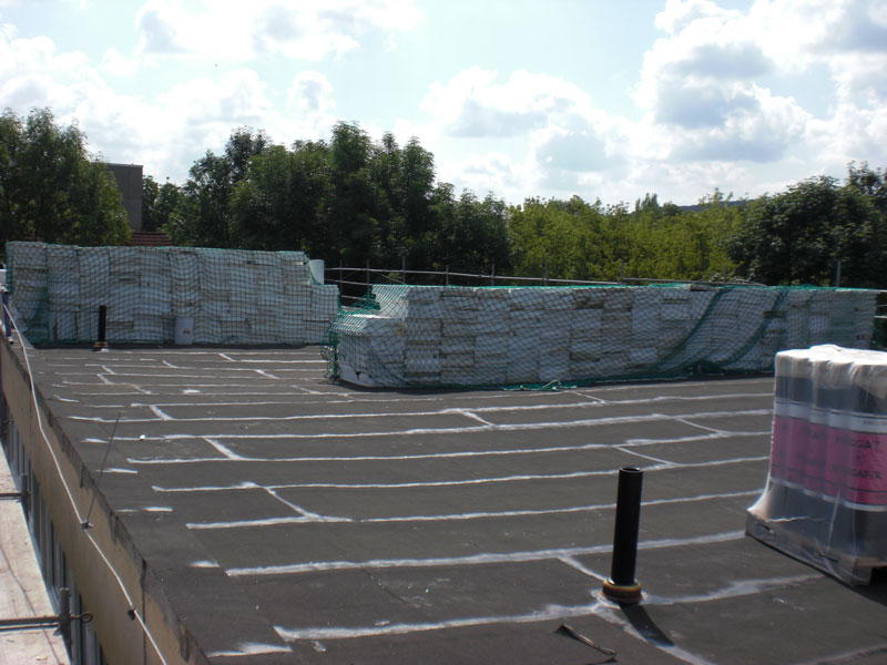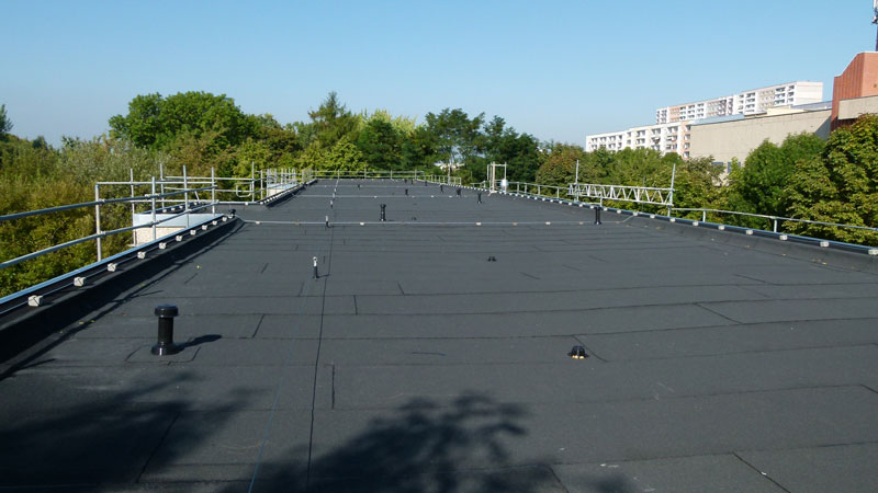 Unsere Leistungen: 870 m² Dachsanierung , incl. Entfernung des alten Dachbelages, Entfernung der alten Dämmung, Ausstattung mit neuer Dämmung und Dachabdichtung mit Bitumenabdichtungsbahn