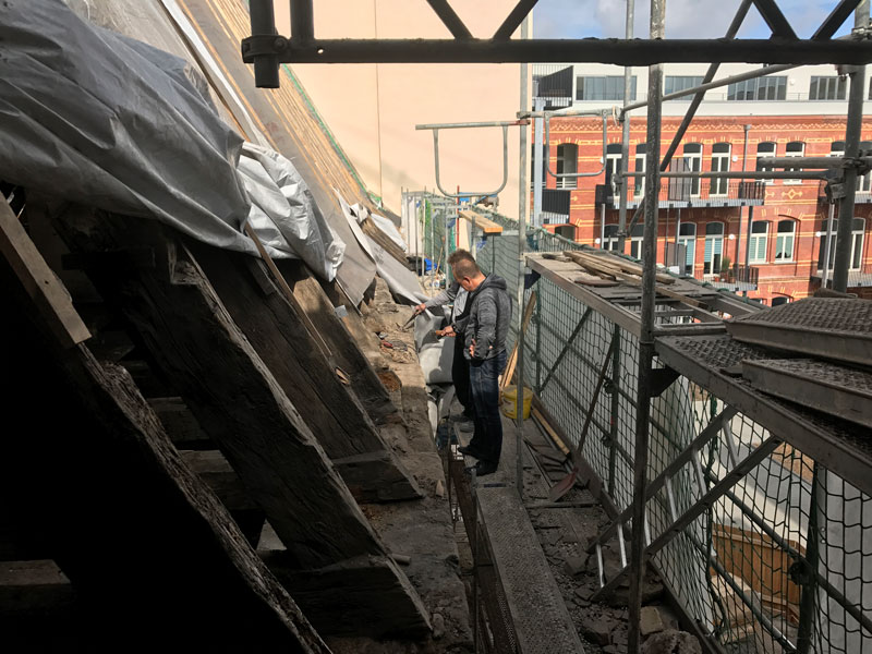 Unsere Leistungen: Modernisierung eines wohl einzigartigen Denkmals, dessen Dachstuhl der älteste noch erhaltene, in einem nicht kirchlichen Gebäude, der Stadt ist.