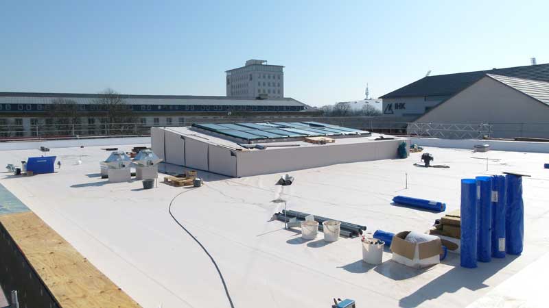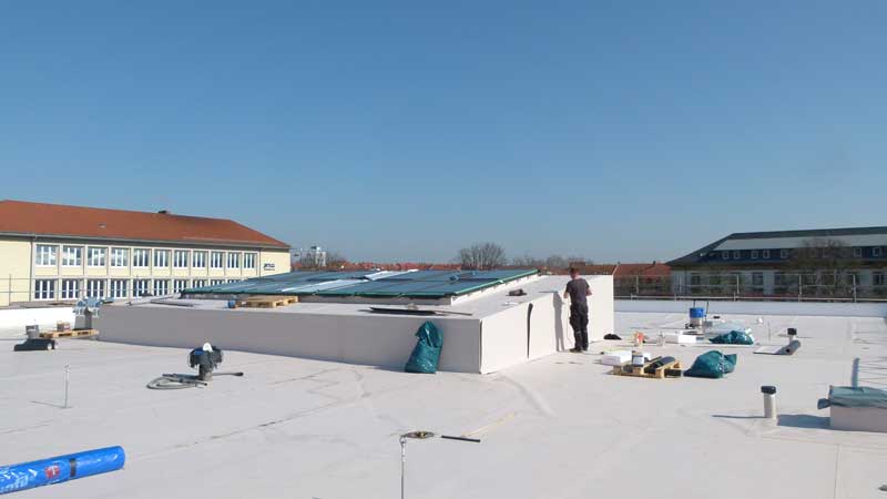 Unsere Leistungen: Dachabdichtung und Dämmung eines ca. 750 m² Erweiterungsbaus